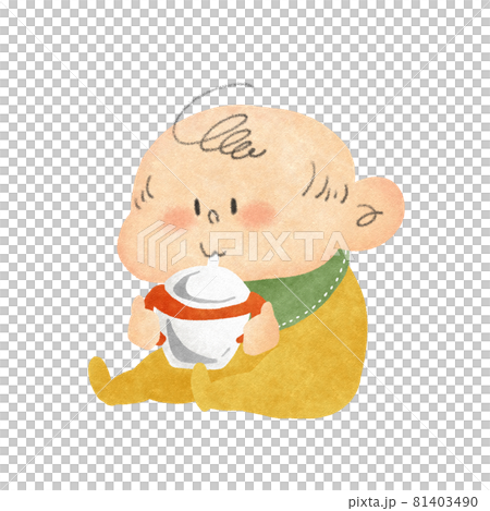 ストローマグで飲む赤ちゃん手描きイラストのイラスト素材